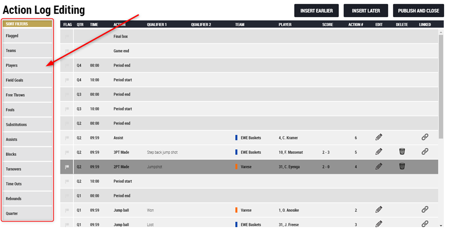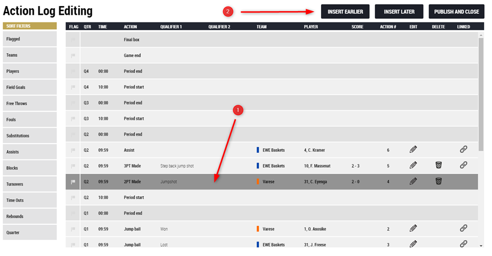 - editing in Action Log https://support.geniussports.com/en/support/solutions/articles/9000126483 and https://support.geniussports.com/en/support/solutions/articles/9000126485