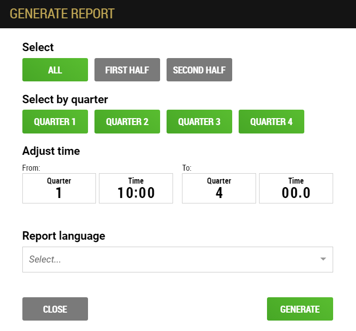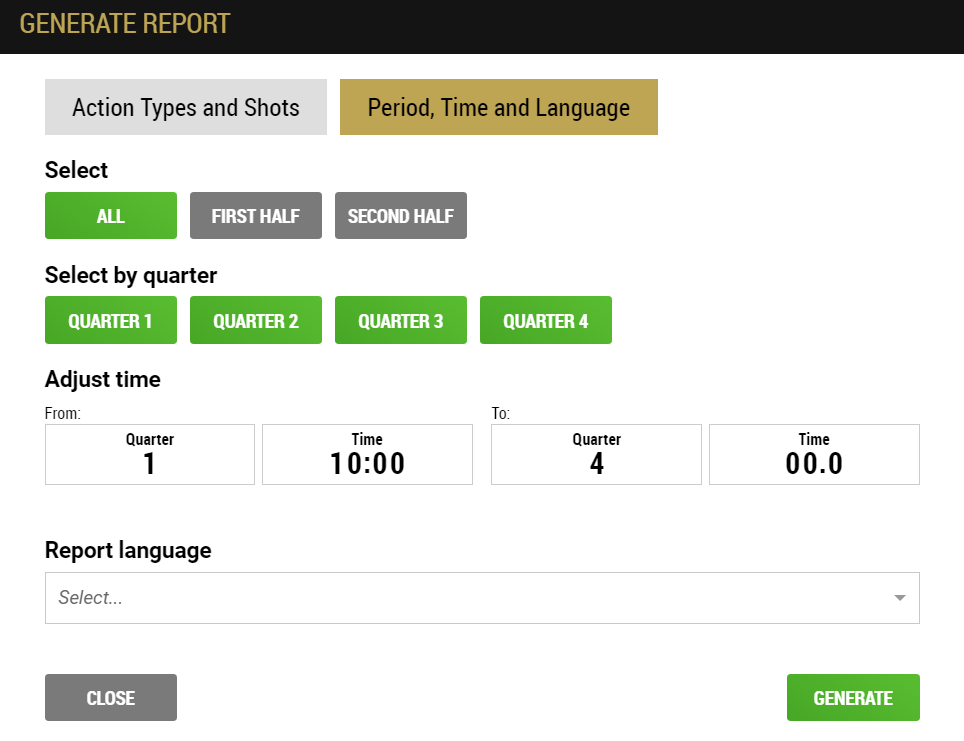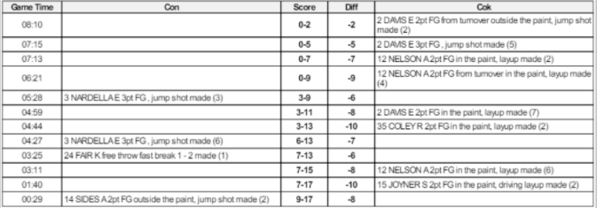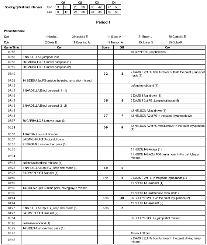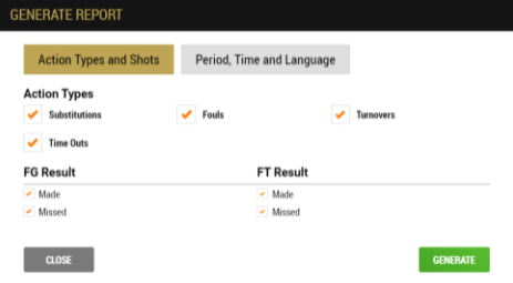1. Play by Play report shows actions made at specific time. Substitutions/Fouls/Turnovers/Time Outs can be deselected if not needed. Missed/Made Field Goals and Free Throws results can be left out.