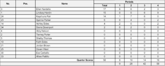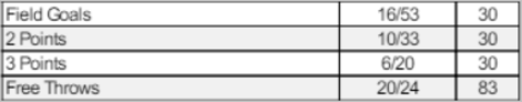 Field Goals Made/Attempted, Percentage, 2 Point Shots Made/Attempted, Percentage, 3 Points Shots Made/Attempted, Percentage, Free Throw Shots Made/Attempted, Percentage, Rebounds Offensive/Defensive/Total, Assists, Turnovers, Steals, Blocked Shots, Fouls Personal/Fouls Drawn, Points are displayed in the table.
