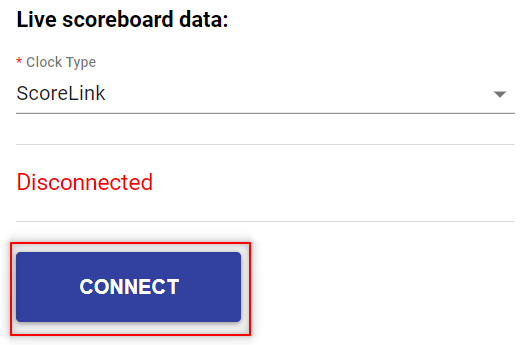 To instead run the game with a real-time clock sourced automatically from the scoreboard, select ScoreLink option in the dropdown menu and click Connect button.